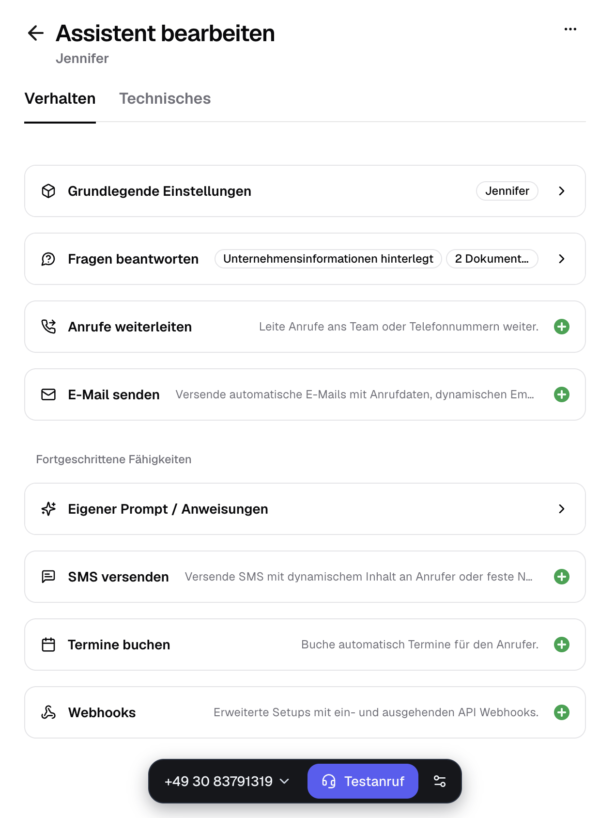 Deine KI ist sofort erreichbar unter ihrer fonio-Rufnummer